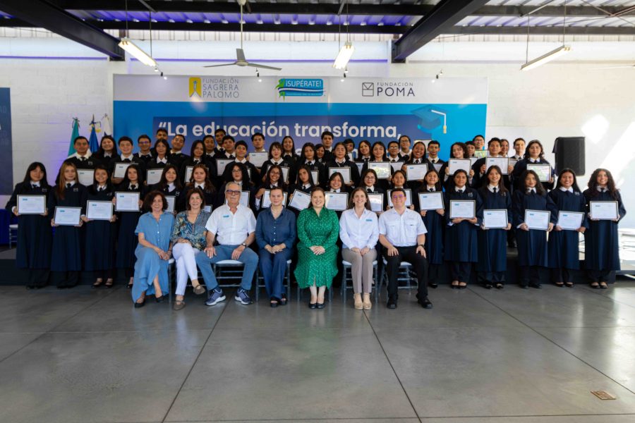 La ceremonia contó con la presencia de Gabriela Poma (vicepresidenta de Fundación Poma), Ricardo Sagrera Bogle (presidente y fundador de ¡Supérate!), Juanita Zelaya de Müller (directora ejecutiva) y representantes de aliados estratégicos como Microsoft.