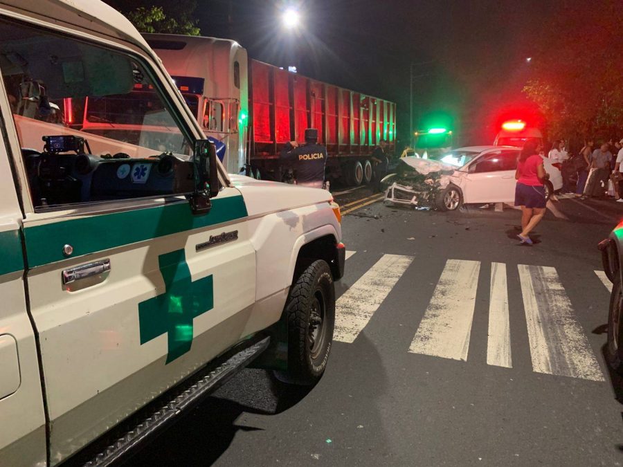 Por otro lado, en la madrugada de este martes una rastra chocó contra un vehículo tipo sedán en el sector del barrio Lourdes en el bulevar Venezuela de San Salvador, informó Cruz Verde Salvadoreña en su cuenta de Facebook. La entidad informó que una persona resultó lesionada y fue trasladada hacia un centro asistencial.