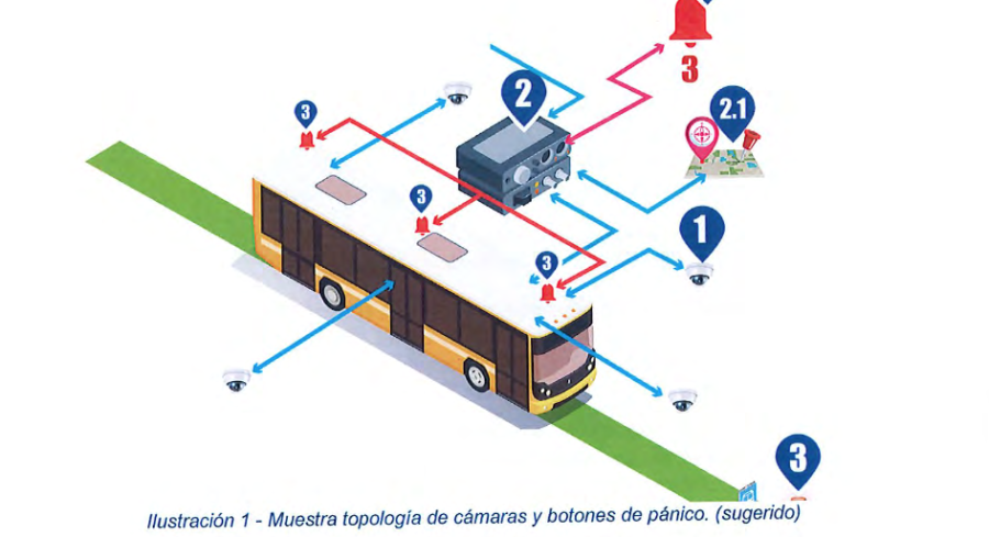 El Viceministerio de Transporte (VMT) del MOPT anunció, hace una semana, la instalación de cámaras y GPS en más de 9,000 unidades de transporte público. Según las bases de licitación, cada unidad de transporte tendría cuatro cámaras y se requerirían cámaras para 5,000 paradas de buses con capacidad de visión nocturna, tres botones de pánico por unidad de transporte, un botón de pánico por cada poste en las paradas de buses, según las bases de licitación publicadas con el primer aviso, el 31 de julio de 2025.