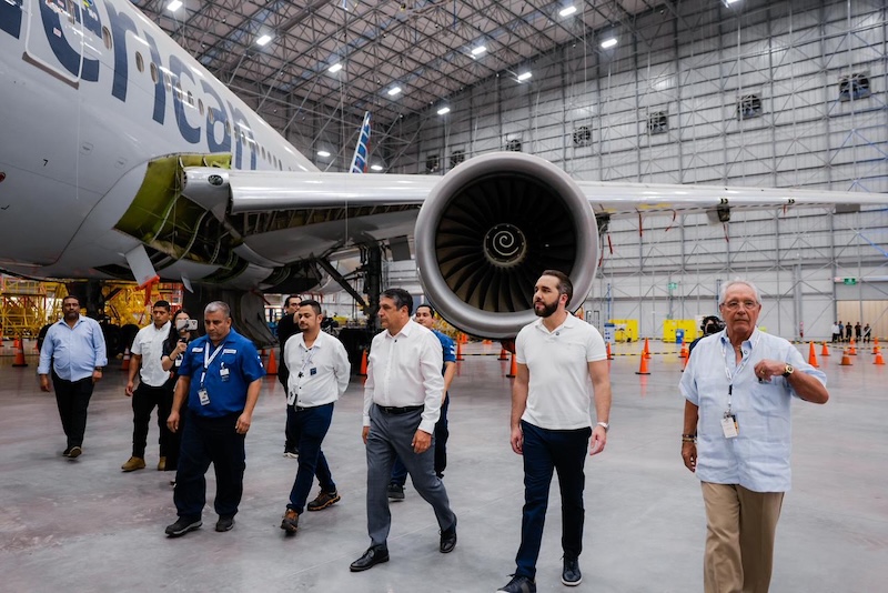 “Este es el ejemplo de un país donde las inversiones están seguras, donde hay seguridad jurídica, estabilidad política, apoyo ciudadano y por lo tanto hay garantía de que en todo el futuro previsible El Salvador no va a cambiar su política de desarrollo a través de la inversión”, dijo Bukele, quien recorrió el hangar junto a ejecutivos de la compañía.