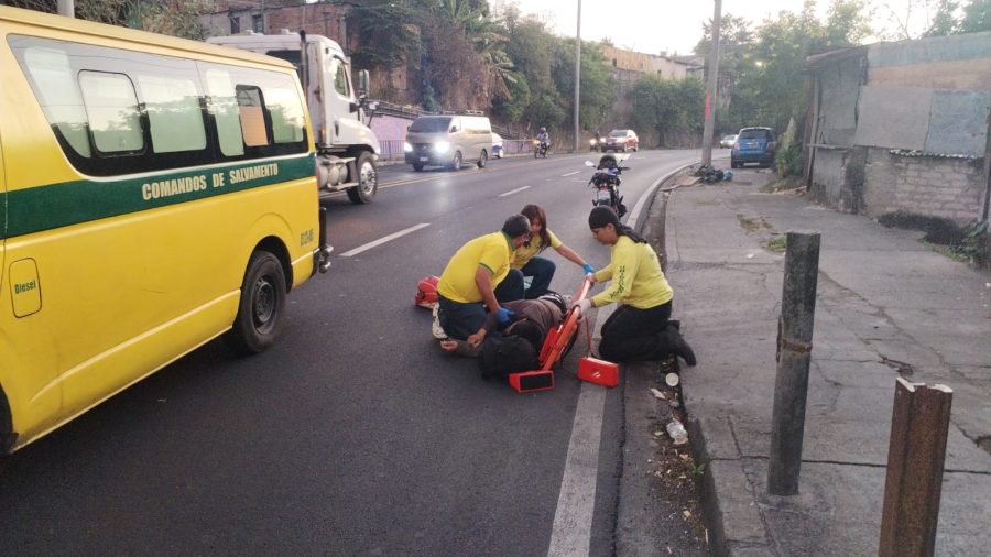 Otro accidente ocurrió en el bulevar Venezuela, a la altura del barrio San Esteban, donde un motociclista perdió el control en una curva y sufrió múltiples lesiones, por lo que será trasladado al hospital Zacamil.