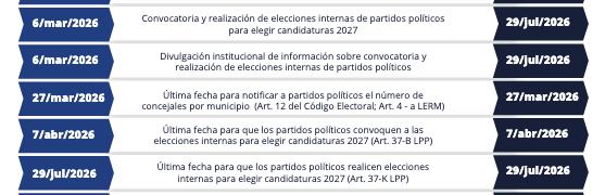 Parte del calendario electoral del TSE en torno a las elecciones 2027.