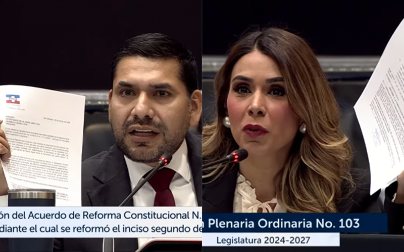 «Llegó el momento de ver quién es hombre y quién es cobarde», insistió posteriormente y sometió a votación la ratificación de la reforma constitucional al artículo 27, para instaurar la pena perpetua en El Salvador. «Es que ahorita tiene un rótulo el colega diputado, ojalá que no le interfiera a la hora de votar. El ‘sí pero no», comentó en el pleno, antes de la votación. La ratificación recibió 58 votos, incluido el de la diputada Marcela Villatoro, de Arena, y los usuales 57 votos de Nuevas Ideas y sus aliados.