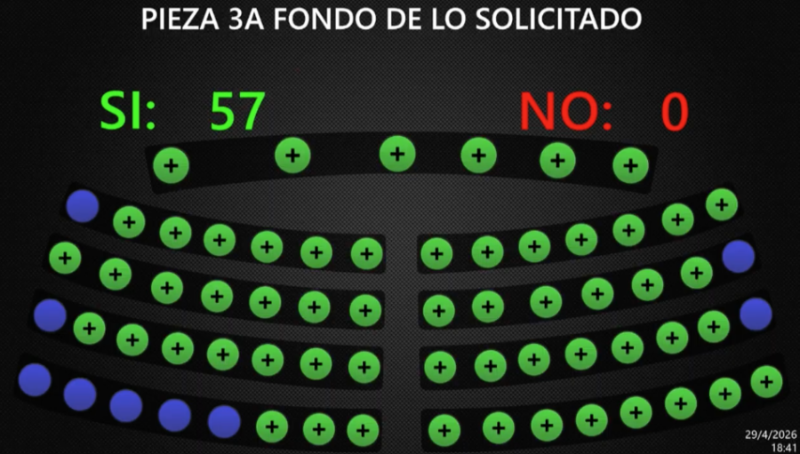 La dispensa de trámites fue aprobada con 57 votos y un voto en contra de la diputada Claudia Ortiz, de Vamos. Por el fondo de lo solicitado, hubo 57 votos a favor y cero en contra.