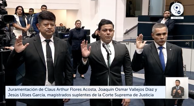 La Asamblea Legislativa eligió y juramentó este miércoles, con dispensa de trámites, a tres magistrados suplentes de la Corte Suprema de Justicia, uno de los cuales ocupará una magistratura suplente en la Sala de lo Constitucional.