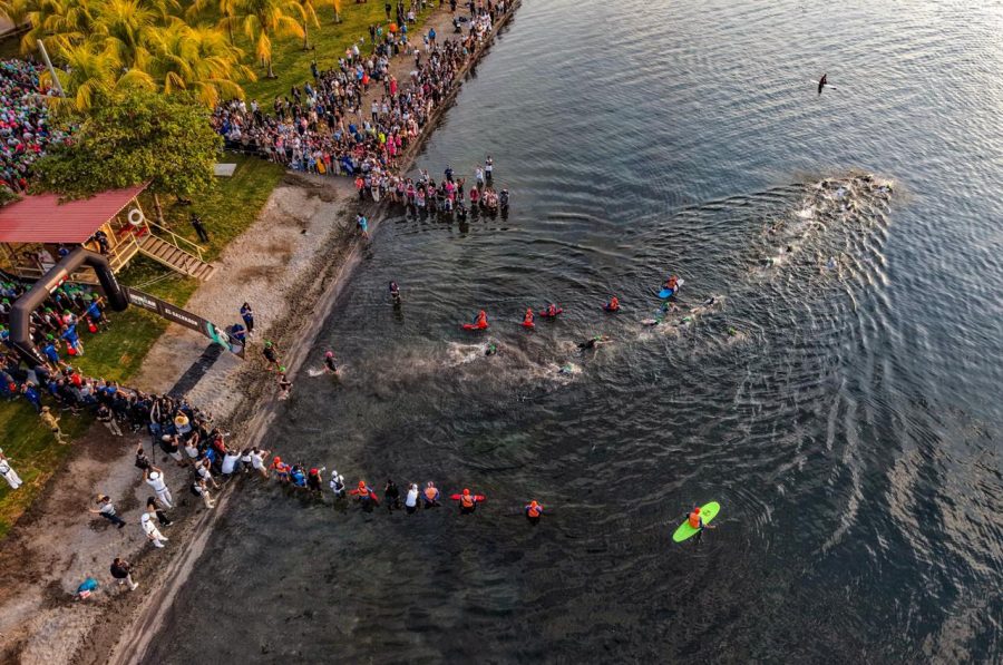 Son 1,200 atletas los que participan en esta competencia que empezó con 1.9 kilómetros de natación en el Lago de Ilopango, en el Parque Recreativo Apulo, ubicado a orillas del lago de Ilopango, en San Salvador Este.