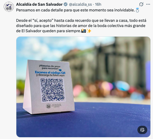 La cuenta oficial de la comuna aseveró que se trataba de «la boda colectiva más grande de El Salvador» y que es «un momento histórico que reúne a cientos de parejas en el corazón del Centro Histórico»