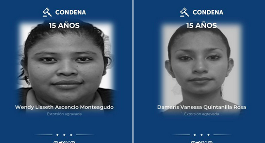 El Tribunal de Sentencia de San Francisco Gotera condenó a Wendy Ascencio y Damaris Quintanilla a 15 años de cárcel por el delito de extorsión agravada.