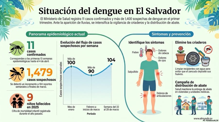 El dato que si otorga Salud es que en las 13 semanas epidemiológicas han detectado 1,479 casos sospechosos de dengue, de los cuales, durante el mes de enero fueron más de 100 casos sospechosos que luego descendieron a más de 90 semanales. Fue hasta la semana del 22 al 28 de marzo, justo antes de Semana Santa, que los casos con sospecha de dengue volvieron a incrementar a 104 semanales.