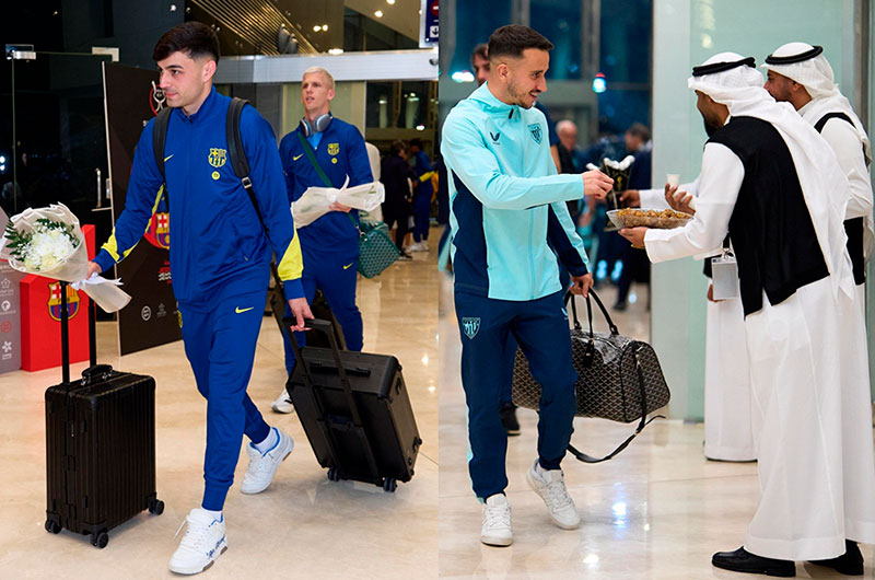 El FC Barcelona y el Athletic Club aterrizaron este lunes en la ciudad saudí de Yeda, donde el miércoles se enfrentarán en la primera semifinal de la 42ª edición de la Supercopa de España.