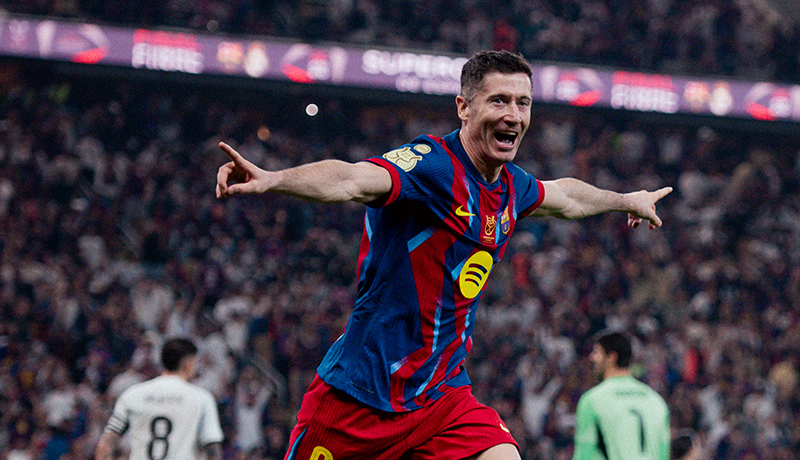 El intercambio de golpes, con tres goles en el tiempo añadido, igualó al descanso (2-2) la final de la Supercopa de España en el Alinma Stadium entre Barcelona y Real Madrid, con tantos de Raphinha y Robert Lewandowski, respondidos por Vinícius y Gonzalo García.