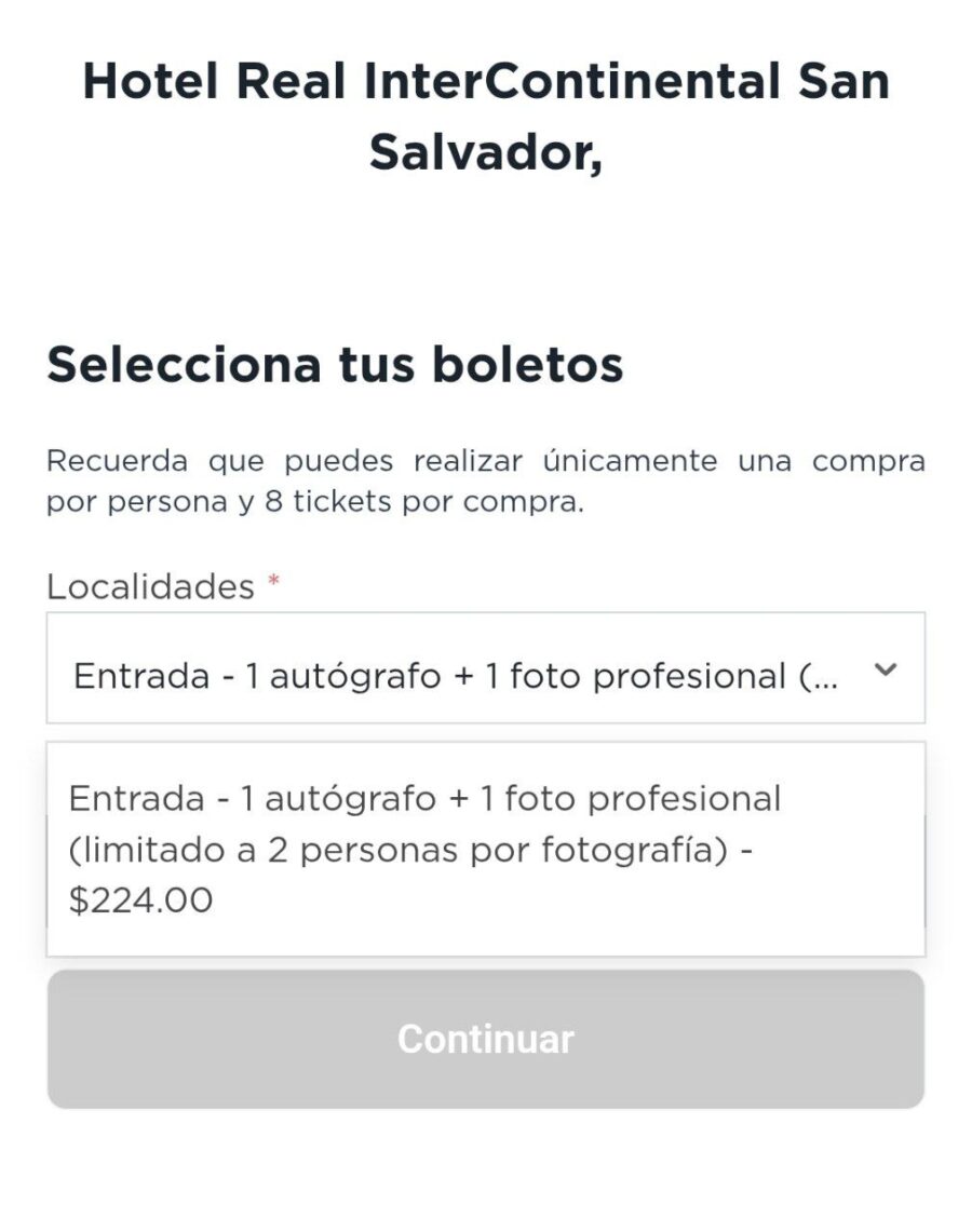 Según Fun Ticket, el sitio oficial de venta de entradas, el precio de la experiencia incluye un autógrafo del astro español y una foto profesional. La foto está limitada a dos personas por cada fotografía y el valor es de $224.