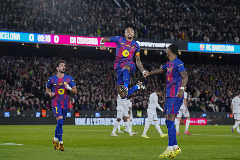 Con Ferran Torres, máximo goleador del equipo con once tantos, Robert Lewandowski (8) y Lamine Yamal y Raphinha (6), el Barcelona es de los pocos equipos europeos que tienen a cuatro delanteros con cinco o más goles anotados a estas alturas de temporada.