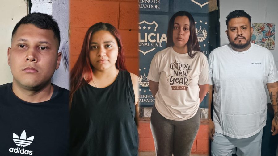 Los detenidos fueron identificados como: Amílcar Eduardo Flores Pérez, Bryan Alexander González Castro, Carolina Guadalupe Burgos Bonilla, Daniela Esmeralda González Valencia y Jonathan Brayan Alvarenga Vásquez.