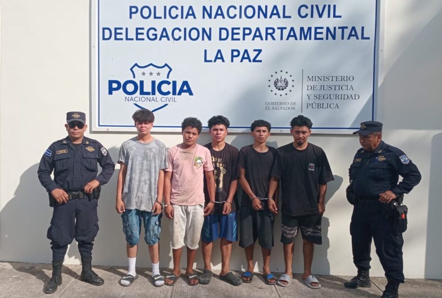 La Policía Nacional Civil (PNC) reportó la detención de cinco hombre, entre ellos, dos menores de edad en la colonia Palmira del distrito de Zacatecoluca, en La Paz, el sábado, por los delitos de agrupaciones ilícitas y receptación.