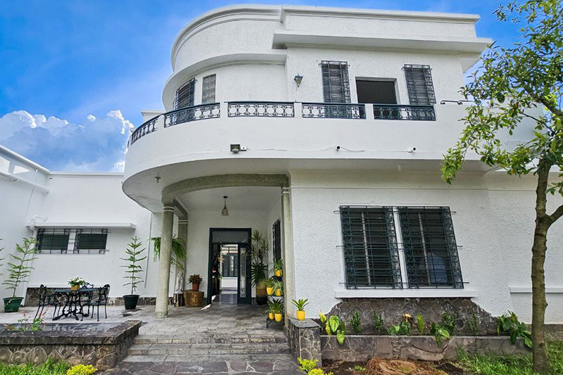 Sandra de Rodríguez, gerente general de Delibanquetes, explicó que la propiedad fue restaurada respetando su diseño original, basado en el arte neoclásico moderno, con una vista privilegiada hacia el centro de San Salvador.