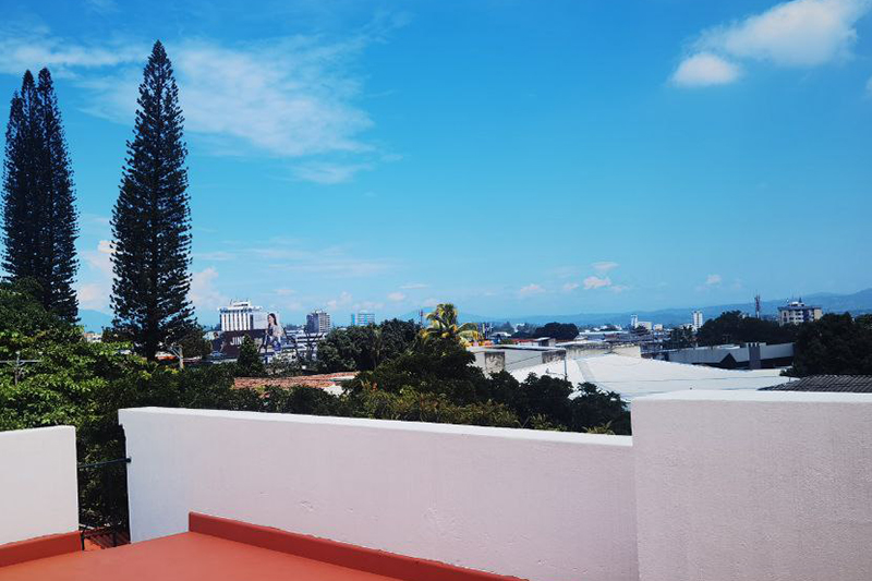 Vista hacia el centro de San Salvador desde la terraza del nuevo local de Sandra de Rodríguez, gerente general de Delibanquetes. /DEM