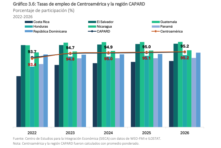 Para el próximo año, la Sieca estima que Centroamérica y República Dominicana podrían alcanzar un 95.2 % de la población en edad de trabajar que se encuentra ocupada.