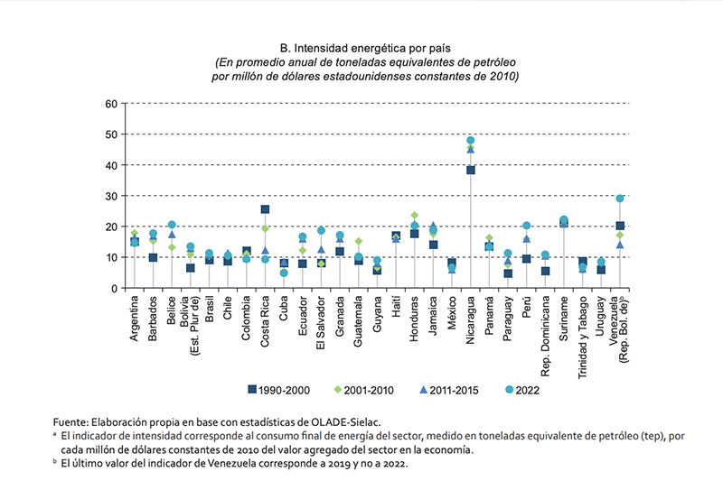 Nicaragua, en tanto, tiene una intensidad energética de casi 50 tep anuales, por encima de las 40 tep de finales de la década de 1990.