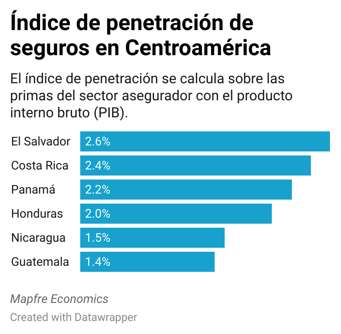 De acuerdo con el informe, El Salvador tiene una penetración del 2.6 %, colocándose por encima del 2.4 % registrado en Costa Rica y Panamá, las economías más dinámicas de la región centroamericana.