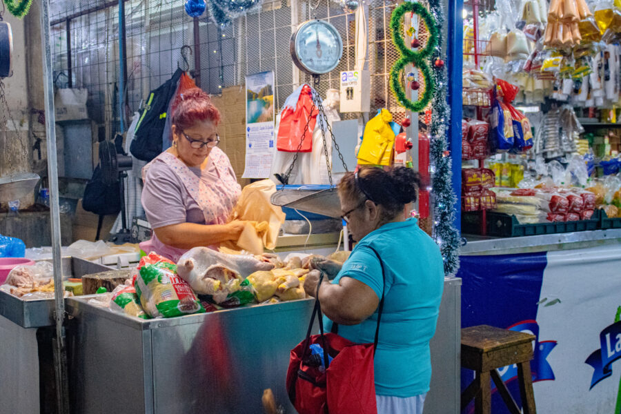 Mikeli Trejo, comerciante del mercado, aseguró que desde el 22 de diciembre se empieza a llenar generalmente los pasillos preguntando por pollos y gallinas, pero que, este año, la situación es diferente porque todo está “tranquilo”.