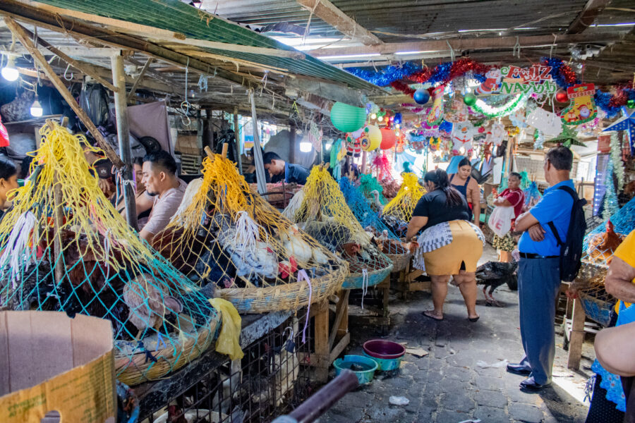 Bolsas de relajo a $0.25, bolsas de tomates a $1 y gallinas en todos los tamaños son de las postales más populares que se observan durante la temporada de fin de año por las calles de los alrededores del mercado central de San Salvador.