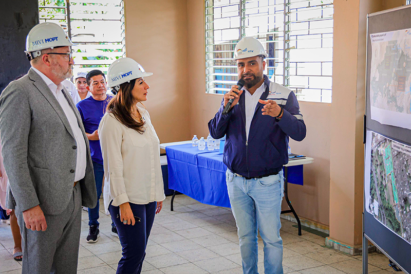 La ministra de Vivienda, Michelle Sol, y el embajador de Alemania en El Salvador, Friedo Sielemann, realizaron este miércoles un recorrido por las comunidades donde se ejecutarán las obras, como parte de un financiamiento de $27 millones del banco de cooperación alemana KfW, destinado a un programa regional de adaptación urbana ante el cambio climático.