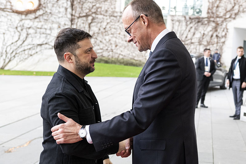Merz saludó a Zelenski unas dos horas después de que éste aterrizara en Berlín, donde se reunió primero con su equipo, liderado por el secretario del Consejo de Seguridad Nacional y Defensa, Rustem Umérov, y el jefe del Estado Mayor General, Andrí Gnátov, para preparar el encuentro.