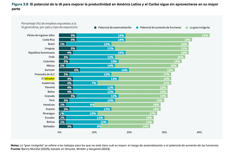 El Salvador figura entre los países con mayor exposición laboral a la inteligencia artificial en la región