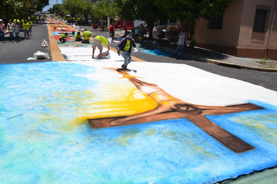 La Semana Santa y simbolismo indígena que en algunos lugares las procesiones incorporan alfombras con diseños que recuerdan símbolos naturales (flores, animales, geometrías tradicionales). - La procesión de los Cristos en Izalco, una peregrinación masiva que combina la veneración católica a imágenes de Cristo con rituales ancestrales de congregación y culto a la tierra.