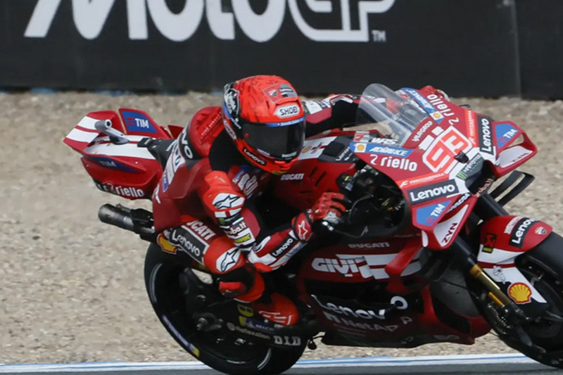El piloto español Marc Márquez (Ducati) ha ganado este sábado de forma épica la carrera corta al esprint de MotoGP en el Gran Premio de España de Motociclismo, que se disputa desde el viernes y hasta el domingo en el Circuito de Jerez-Ángel Nieto y donde los pilotos españoles han conseguido dos de las tres ‘poles’ posibles.