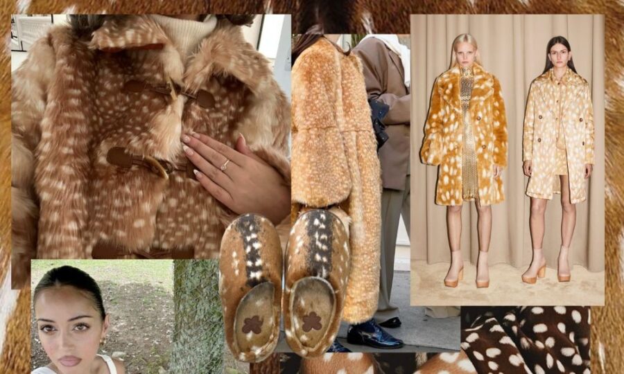 Cansados de los estampados felinos como el de leopardo, lince, serpiente, cebra o vaca, el pelaje de cervatillo se cuela en la moda y se convierte en una obsesión gracias a sus tonos marrones salpicados con un moteado blanco.