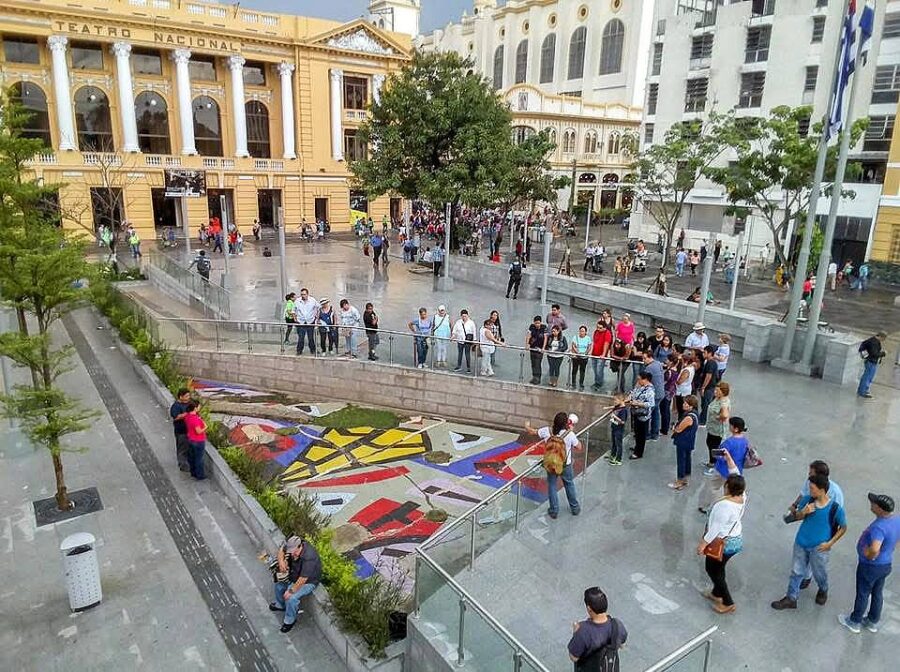 Durante las restauraciones y excavaciones realizadas en 2017 por la alcaldía capitalina, salieron a la luz antiguos mosaicos del maestro Carlos Cañas (1924-2013), pintor de la cúpula interna del Teatro Nacional, que habían quedado sepultadas por remodelaciones previas. Parte de la obra fue integrada nuevamente al espacio público, permitiendo a los visitantes redescubrir una pieza clave del arte moderno salvadoreño en pleno corazón del Centro Histórico.