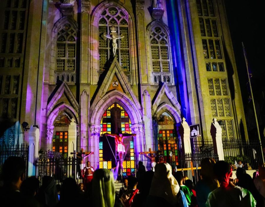 El Jueves Santo es uno de los días importantes para la feligresía católica, que acude al escenario de esta Semana Santa en el Centro Histórico de San Salvador.