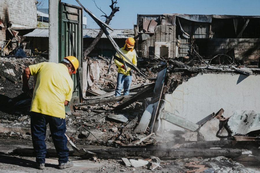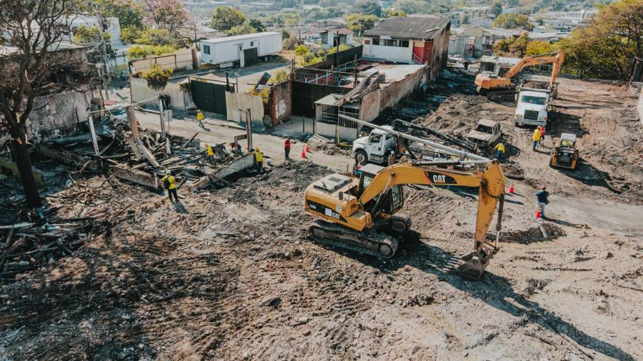 Según las fotografías que compartió la Secretaría de Prensa de la Presidencia, la mañana de este domingo, excavadoras y camiones pesados trabajan en la limpieza del lugar, donde la mayoría de viviendas eran de madera y lámina troquelada centenaria, entre estas, La Concordia que en 1,872 reunió a la Sociedad de Artesanos de El Salvador.