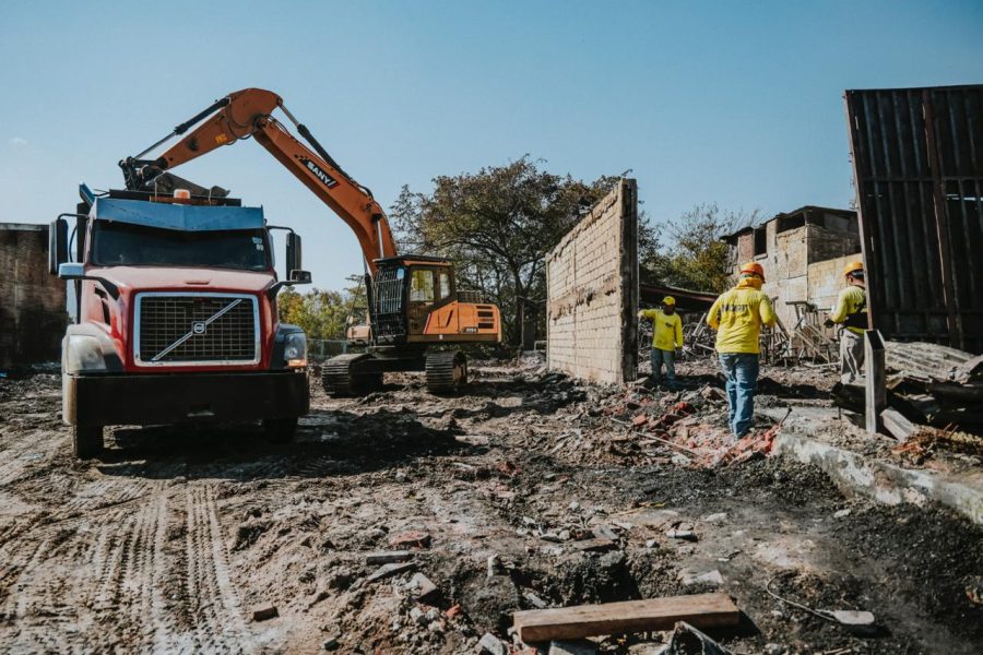 Según las fotografías que compartió la Secretaría de Prensa de la Presidencia, la mañana de este domingo, excavadoras y camiones pesados trabajan en la limpieza del lugar, donde la mayoría de viviendas eran de madera y lámina troquelada centenaria, entre estas, La Concordia que en 1,872 reunió a la Sociedad de Artesanos de El Salvador.
