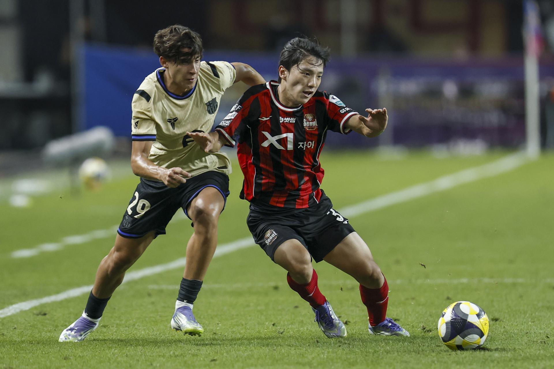 El Seúl reaccionó al minuto 26 gracias a un error en la salida culé, que permitió a Youngwook Cho marcar el 1-2. En el tiempo añadido del primer tiempo, otro desajuste defensivo habilitó a Yazan, quien fusiló a Joan García para igualar el marcador.