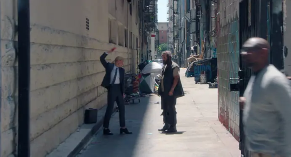 En su recorrido, el Líder observa a dos personas jugando al ddakji en un callejón: una mujer elegantemente trajeada y un hombre desaliñado. La mujer le da una bofetada al hombre, recordando la icónica escena con Gong Yoo. «La clase de bofetada que solo Cate Blanchett puede hacerte sentir a través de la pantalla», escribió Netflix junto al video.