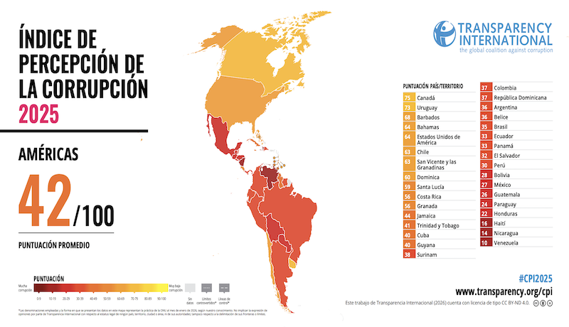La corrupción ha empeorado en la mayoría de países del mundo, incluyendo democracias consolidadas de Europa y Norteamérica, según el Índice de Percepción de la Corrupción (IPC) 2025 de Transparencia Internacional, presentado este martes.