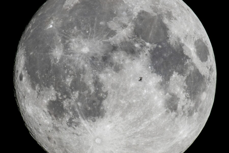 La Estación Espacial Internacional captada en primer plano de la Luna