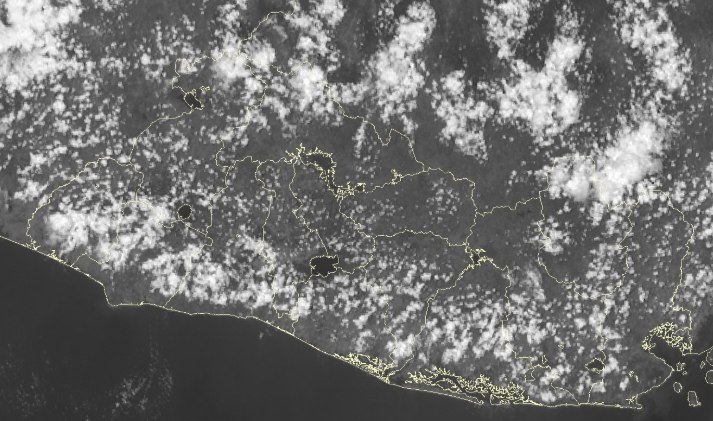 De acuerdo con el reporte, el cielo se mantiene nublado a lo largo de la franja volcánica, así como en zonas montañosas del noroccidente y nororiente. En el resto del territorio se observa poca nubosidad, mientras que en la zona costera el cielo permanece despejado.