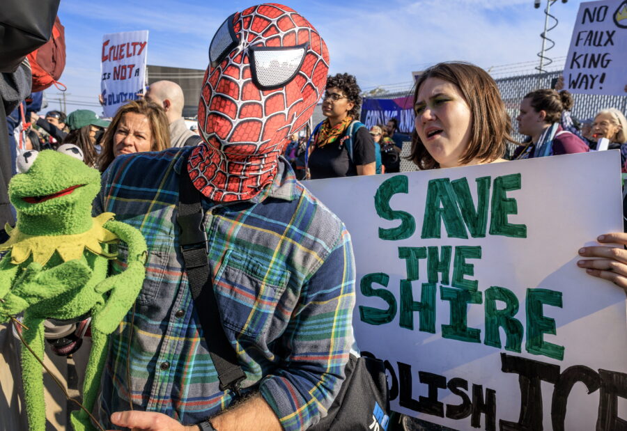 Activistas se manifiestan frente al centro de detención de ICE en Broadview, Illinois, EE. UU., el 17 de octubre de 2025. Las manifestaciones contra ICE (Servicio de Inmigración y Control de Aduanas de EE. UU.) tienen su origen en preocupaciones sobre los derechos civiles, la seguridad de la comunidad local y la supuesta extralimitación de las fuerzas federales de seguridad.