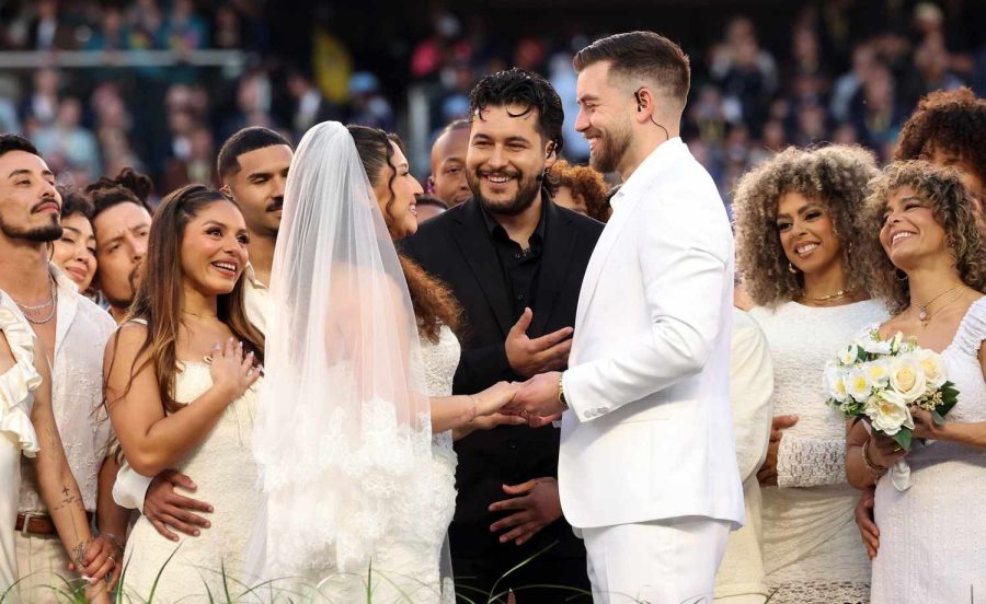 Apuntó que originalmente la pareja tenía a invitados famosos para su boda, entre ellos el puertorriqueño Benito (Bad Bunny), pero luego el equipo del artista les propuso celebrar parte de su enlace en el show más importante de fútbol americano en Estados Unidos.