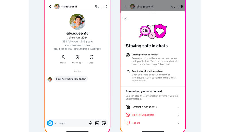 En este sentido, Meta agregó nuevas funciones de seguridad en los mensajes directos de las cuentas de adolescente, que les proporcionarán más contexto sobre los perfiles a los que envían mensajes, de cara a ayudarles a encontrar posibles estafadores.