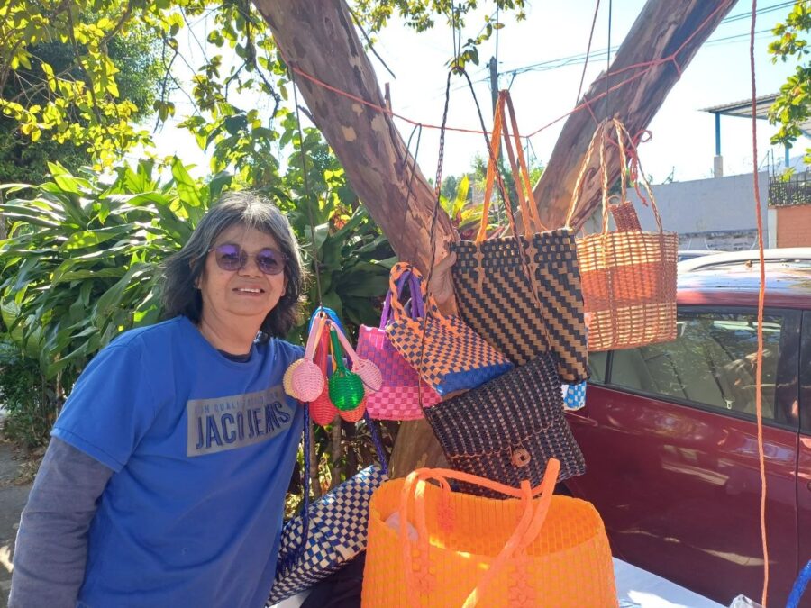A sus 70 años, Ana Ruth Anaya encontró en el croché una forma de mantenerse activa, generar ingresos y seguir adelante. Desde muy temprano, participa en ferias de emprendedores donde ofrece carteras, canastas, cestas, monederos y llaveros elaborados a mano, productos que reflejan tanto su creatividad como su constancia.