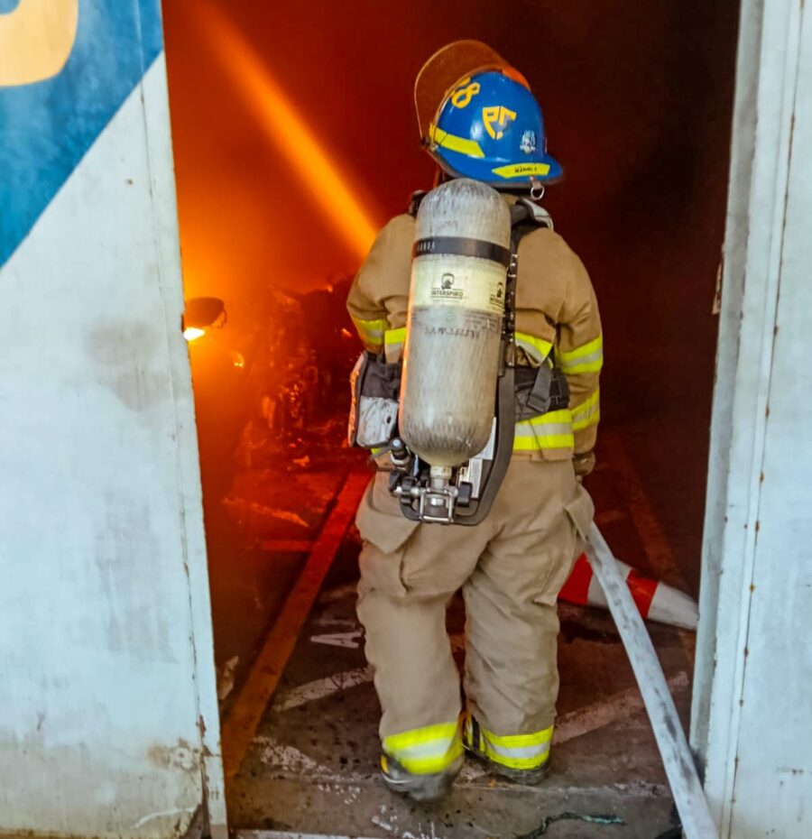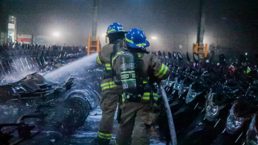 Bomberos informó que atendieron un incendio estructural en una bodega de motocicletas que se encuentra en el kilómetro 5 y medo del bulevar del Ejército, en el distrito de Soyapango, en San Salvador Este.