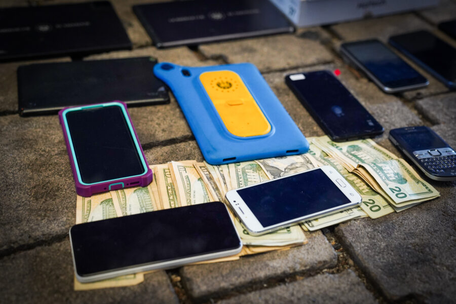 Entre los artículos incautados se encontraron celulares y tablets, algunas de las cuales fueron identificadas como parte del equipo entregado por el Ministerio de Educación a estudiantes para uso escolar.