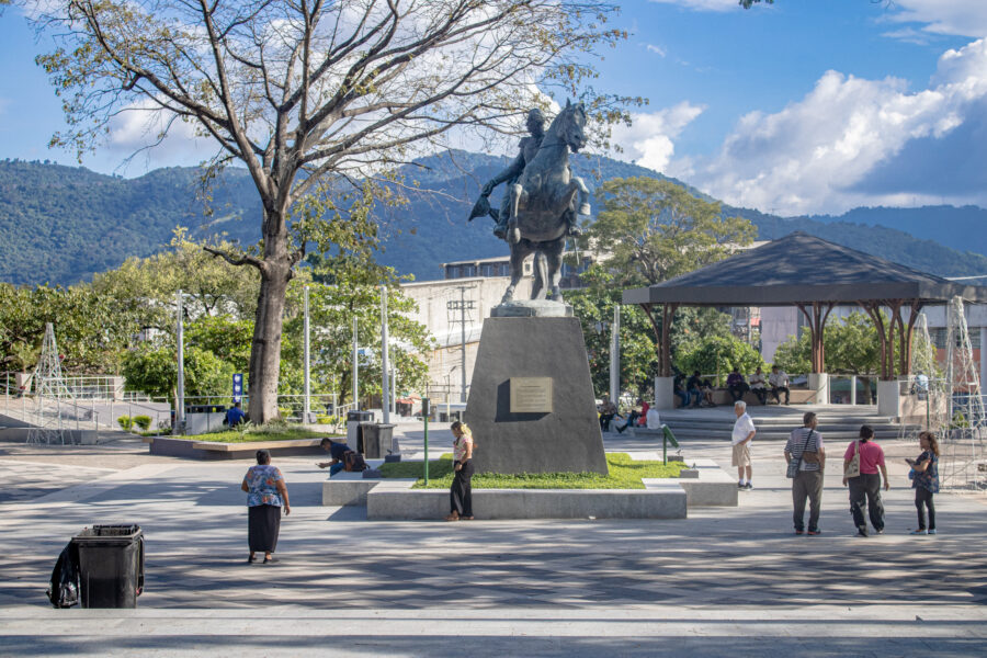 La estatua de Simón Bolívar fue reubicada como parte del rediseño general. La escultura de bronce, donada en la década de los 90 por el Gobierno venezolano se trasladó a una posición más central, donde ahora destaca en su totalidad.