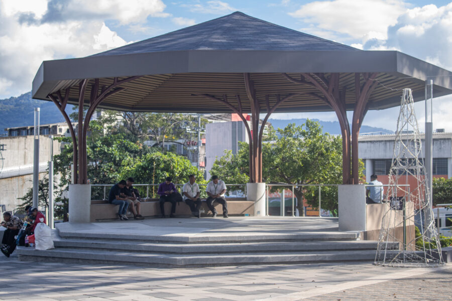 El nuevo kiosco ocupa el papel de protagonista en el corazón del espacio, cuya arquitectura busca emular la estética que ocupaba la plaza originalmente. Este funciona como punto de descanso y, además, está preparado para albergar pequeñas actividades culturales.