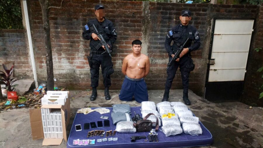 Un hombre buscado por homicidio agravado, extorsión y con una condena previa de 20 años por extorsión fue capturado en un operativo en Nahuizalco, Sonsonate Norte, con varios kilos de marihuana, otras drogas y un arma de fuego, según informó el ministro de Seguridad Pública y Justicia, Gustavo Villatoro.